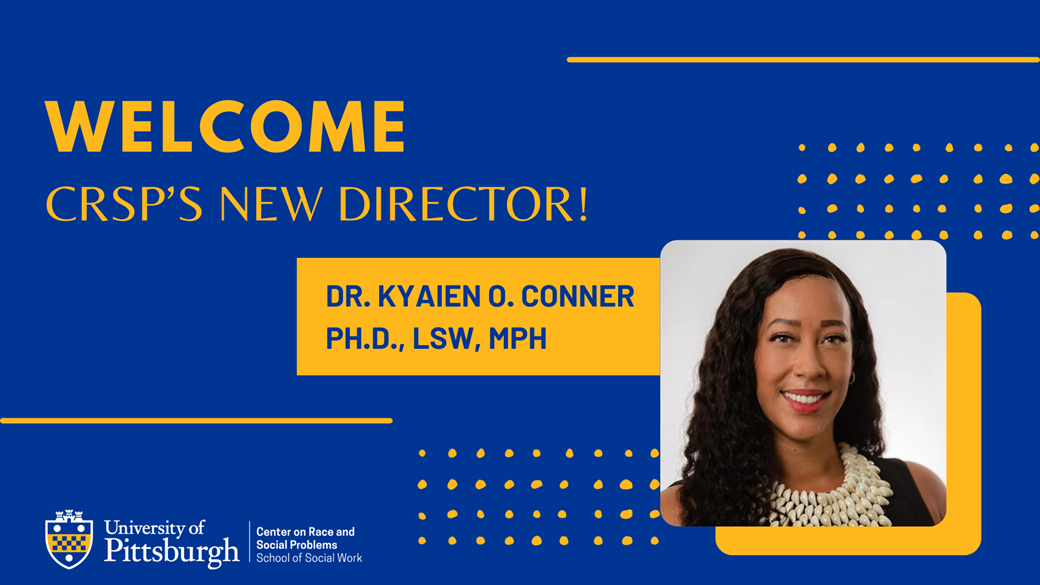 We are so excited to welcome CRSP's New Director, Dr. Kyaien O. Conner Ph.D., LSW, MPH! Kyaien was a student in the School of Social Work when the Center on Race and Social Problems (CRSP) launched at Pitt in 2002. She earned her bachelor’s degrees in psychology and Africana studies, her master’s degrees in social work and public health, and her doctorate in social work from Pitt.